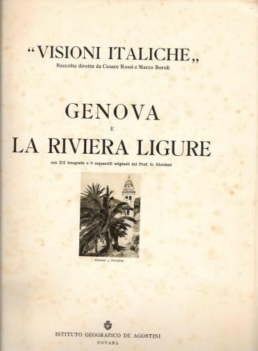 in 4°, pp. 126, leg. edit. ill. Collana: Visioni italiche, con 122 fotografie e 4 (di 9) acquerelli originali, protetti da veline, del prof. G. Giordani. Scorci, monumenti e panorami della Liguria di una volta. Fior. alle prime pp., rinforzo al ds., mancano 5 delle 9 tavv.