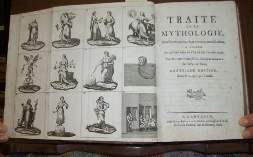 quarta ediz., in 8°, pp. 194, p/pelle coeva, tit. su tass. e fregi in oro al ds. L'opera è divisa in 3 parti che trattano separatamente le principali divinità dei pagani, i semi-dei o Eroi e il culto che veniva reso alle divinità, ed è ill. con 15 tavv. in rame più volte ripieg., su cui sono incise 180 figure a carattere mitologico e simbolico. Piccoli e abili antichi restauri ai margini di 3 tavv. che non intaccano le figure, lievi fior. diffuse, per il resto buon esempl. Raro.