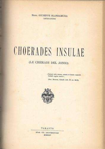 in 8°, pp. XV, 282, 5 nn.; bella leg. recente m/pelle con angoli, tit. in oro su tass. al ds. e piatti marmor. Storia civile, culturale, religiosa, caratteristiche naturali, flora e fauna, miti e leggende dalla più remota antichità ad oggi delle isole Cheradi. Rare fior. alle prime ed ultime pagg., ottimo esemplare. Raro.