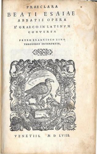 in 8°, pp. 4 b., 79, 1 di Registrum, 2 b.; leg. coeva p/pergamena con laccio e sguardie in pergamena; grande vignetta al front. raffigurante un'aquila con gli artigli su un cervo ucciso su cui si getta un altro uccello, in ovale entro cornice barocca con motto: Virtute parta non sibi tantum; grandi capilettera abitati in xilografia di cui il 1° miniato. Alla 2^ c.b. vi è disegnato un putto seduto su sgabello che cinge uno scudo coronato contenente 3 simboli. Lievi ombreggiature al margine delle prime ed ultime pp. ma ottimo esemplare. Cfr. SBN Biblioteche Pubbliche Statali di Roma.
