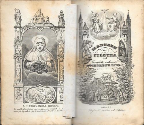 in 16° (cm. 15x9), pp. iv, 912, p/pelle coeva con tit. e ricchi fregi in oro al ds., cornici dorate e fregi a secco ai piatti, tagli dorati; antip. con ritratto di S. Cunegonda protetto da velina, antiporta allegorico con la Trinità , l'Annunciazione e la Natività inciso da G. M. T. P.; lievi e diff. fior.
