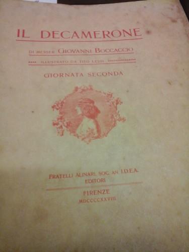 in 4°, pp. 670, bross. edit. foderata in carta pergamenna con tit. e ill. in rossso diversa per ogni fascicolo, carta forte con ampi margini. Una delle più belle edizioni moderne del Decamerone, illustrata con mm. testatine, finalini e disegni n.t. e 100 tavv. f.t. in fotocollografia di Tito Lessi, su carta a mano Miliani di Fabriano. Manca la sovracop. del 1° fascicolo e qc. lieve fior. alle altre sovracop. ma buon esemplare.