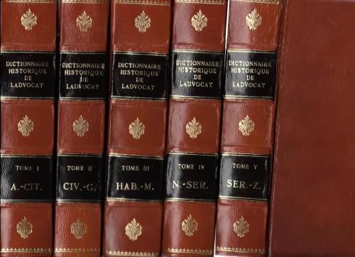 in 8°, pp. 6, 480; 4, 473; 4, 575; 4, 474; 4, 496; leg. recente p/pelle con tit. in oro su tass. e fregi in oro ai ds., testo su 2 colonne. Lievi sporadiche fior. ma ottimi voll. ancora intonsi.