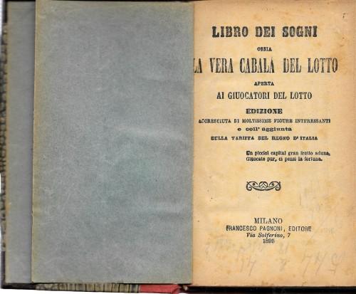 in 16°, pp. 349, 1, leg. coeva con ds. rifatto, antica ill. applicata al piatto. Contiene il Nuovo Regolamento sul giuoco del Lotto pubblico del Regno d'Italia, emanato da Vittorio Emanuele II, e il Regio Decreto che modifica la Tariffa, del 1867, mm. ill. e vignette.