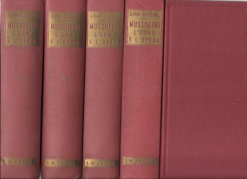 in 8°, pp. 4 nn., 499; 6 nn., 503; 6 nn., 651; leg. edit. p/tela rossa con tit. in oro e custodie in cartoncino. Vol. 1° Dal socialismo al fascismo (1883-1919); vol. 2° Dal fascismo alla dittatura (1919-1925); vol. 3° Dalla dittatura all'impero (1925-1938); vol. 4° Dall'impero alla repubblica (1938-1945), con m. foto d'epoca f.t. Bordi un po' ingialliti ma opera in buono stato.