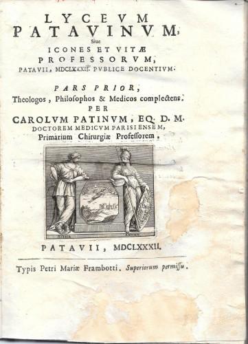 in 4° (cm 23,4x17), pp. 2 b., 137 (ma 141 per ripetizione nella numeraz. delle pp. da 125 a 128), 2 b.; leg. coeva p/pelle ds. a nervi con tit. e fregi in oro, tagli spruzz., bell'antiporta con figure simboliche, marca tipografica con le figure di Igea e Atene incisa al front., 2 belle testate alla dedica e alla prefazione, grandi capil.; 33 splendidi ritratti a mezzo busto entro ovale, coi titoli e con le armi araldiche di ciascun celebre personaggio. Si tratta della prima parte, unica stampata, di un'opera più ampia nelle intenzioni. L'A. fu medico, chirurgo e numismatico; laureatosi in medicina alla Sorbona nel 1656, fu professore di anatomia e patologia nell'università di Parigi dal 1658. Nel 1667 dovette lasciare la Francia per motivi politici e dopo aver soggiornato in vari paesi europei si stabilì in Italia; nel 1681 gli venne affidata la prestigiosa cattedra di chirurgia all'università di Padova che tenne fino alla morte. Opera bella e ben conservata, malgrado la mancanza della cuffia sup., lievi sfregamenti alla leg., qc. lieve ombreggiatura alle prme pp. e un rinforzo al verso del front. (per probabile cancellatura di antiche firme), con carta pulita e forte.
