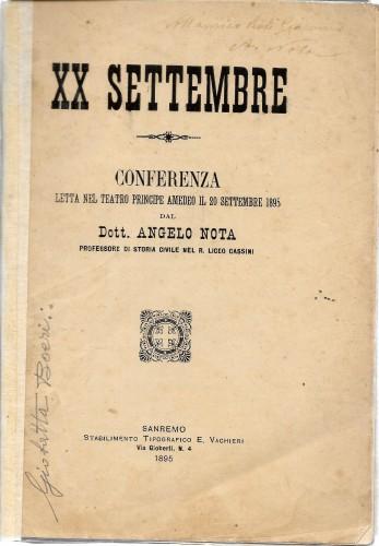 in 16°, pp. 71, 1 b., bross. edit. con sovracop. recente in PVC. Discorso in occasione del 25° anno della breccia di Porta Pia.