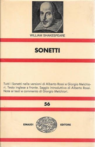 in 16°, pp. CLXXIII331, 6 nn., p/tela edit. azzurra con sovracop. ill. Collana: NUE 56; traduz. di Alberto Rossi e Giorgio Melchiori. Tutti i sonetti con testo inglese a fronte. Buon esemplare.