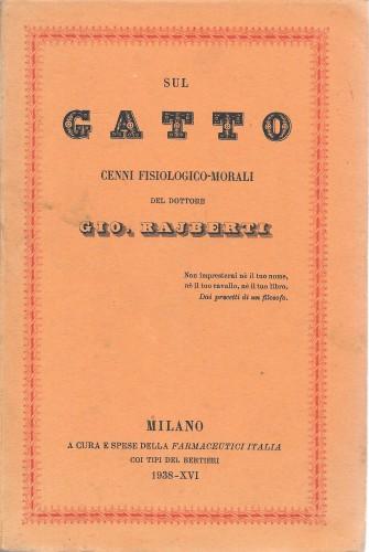 in 16°, pp. 115, bross. edit. con sguardie. Spassoso ritratto del felino più amato, con 4 ill. in nero a p/pag. di Anselmo Bucci. Lievi ombreggiature alla bross. e carta un po' ingiallita dal tempo-