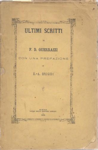 in 8°, pp. XV, 1 b., 116, bross. edit. con tit. e fregi in nero. Scrittore e uomo politico, l'A. fu membro del governo rivoluzionario in Toscana e deputato del Parlamento Subalpino, coi suoi libri diede origine al romanzo storico risorgimentale.
