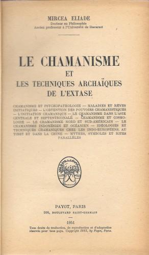 1^ ediz., in 8°, pp. 447, leg. coeva tipo edit. con tit. in oro al ds. Importante saggio sullo sciamanesimo nella varie parti del mondo, tecniche, riti e simboli. Carta un po' ingiallita dal tempo.