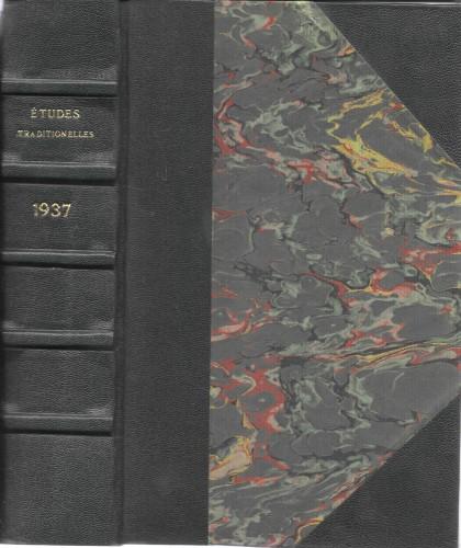 annata completa, in 8°, pp. 448, leg. in m/pelle verde con angoli, ds. a nervi con tit. in oro, piatti marmor. Gli autori: A. al-Karim al-Djili; R. Allar; A. Avalon; T. Burckhard; L. Charnonneau-Lassay; A. K. Coomaraswamy; Geticus; R. Guenon; A. Preau; Probst-Biraben; J. Reyor; Shankaracharya; G. Tamos; J. Vassel; P. Vulliaud; J. Woodroffe. In ottimo stato.