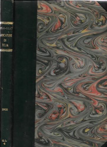 in 4°, pp. XVIII, 381, leg. novecentesca in m/pelle verde con angoli, tit. in oro al ds. e piatti marmor. Present. di Edmondo De Amicis. Prima edizione delle migliori caricature del Teja uscite sul Pasquino nel periodo 1856-1897, durante la formazione dell'unita d'Italia. Qc. lieve fior.