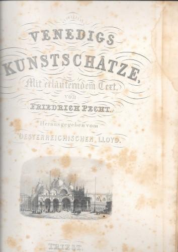 in 4°, pp. 175, leg. edit. m/maroc. verde con angoli, ds. a nervi con tit. e fregi in oro, piatti e sguardie marmor., vignetta al front., testo entro cornice e capil. " I tesori d'arte di Venezia. Galleria di capolavori della pittura veneziana, in incisione su acciaio. Con testo esplicativo del dipartimento artistico-letterario del Lloyd austriaco ". Opera del celebre storico, ritrattista e litografo tedesco, ill. da 27 splendide inc. f.t. a piena pag. protette da veline, (mancano la n° 22 e la n° 27); lievi aloni e fior. diffuse.