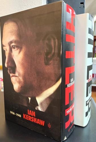 in 8°, pp. XXXVII, 1 b., 965; LIII, 1 b., 1399; leg. edit. con sovracop. ill. e cofanetto rilegato e ill. Traduz. di Alessio Catania. L'autore presenta la storia del dittatore tedesco rigorosamente come storia della società che lo rese possibile. Rinunciando ad ogni spiegazione facilmente personalistica, Hitler viene visto non come causa prima del nazismo, ma come suo articolato epicentro, sulla base delle strutture politiche e delle forze sociali che ne consentirono la conquista e l'esercizio del potere. La personalità del dittatore diventa dunque la chiave interpretativa di un intero periodo storico. Quest'opera è considerata una delle più importanti biografie storiche del nostro tempo. Con 58 ill. b/b f.t. nel 1° vol. e 93 ill. b/n f.t. ed 8 cartine in nero nel 2° vol., ricchi riferimenti bibliogr. e indice analitico. Ottimo.