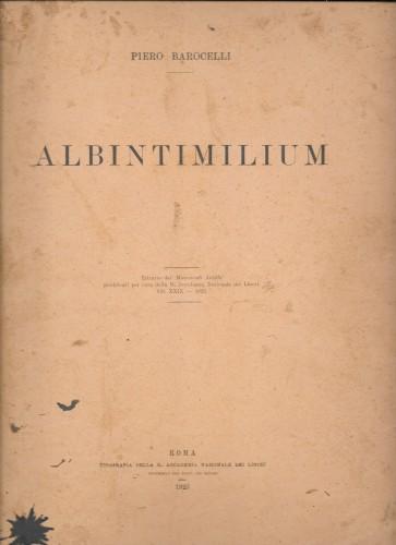 in 4° (cm 34,5x26), 146 colonne, pp. 1 b., 1 di Indice, 1 b., 2 tavv. topogr.; bross. edit. con rinforzo al ds. Con numerose figure n.t. e 2 tavv. in fine, una col piano degli scavi e l'altra col piano dell'anfiteatro di Ventimiglia. Il presente studio è considerato ancora oggi di fondamentale importanza per la storia di Albintimilium, il municipio ai confini della Regio IX Liguria. L'A., esperto in egittologia, archeologo e primo funzionario della Regia Soprintendenza Archeologica per il Piemonte e la Liguria, condusse personalmente gli scavi sul sito tra il 1914 ed il 1918. La sua traccia fu seguita, alcuni anni dopo, da Nino Lamboglia. Barocelli contribuì al lavoro di documentazione sulle incisioni rupestri del Monte Bego, che allora si trovavano in territorio italiano, condotto dall'archeologo inglese Clarence Bicknell, ed anzi continuandone poi l'opera in solitaria; bisogna ricordare che proprio nel 1923 gli fu ordinata dal Ministero una esplorazione metodica delle incisioni. Personaggio schivo ma cordiale, lavoratore assiduo, dal 1911 al 1930 non usufruì di nessun giorno di ferie. Lievi ombreggiature, fioriture, strappetti e macchiette d'inchiostro alla bross., rare fior. interne, buon esemplare. Raro.
